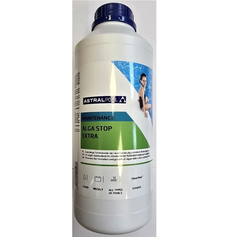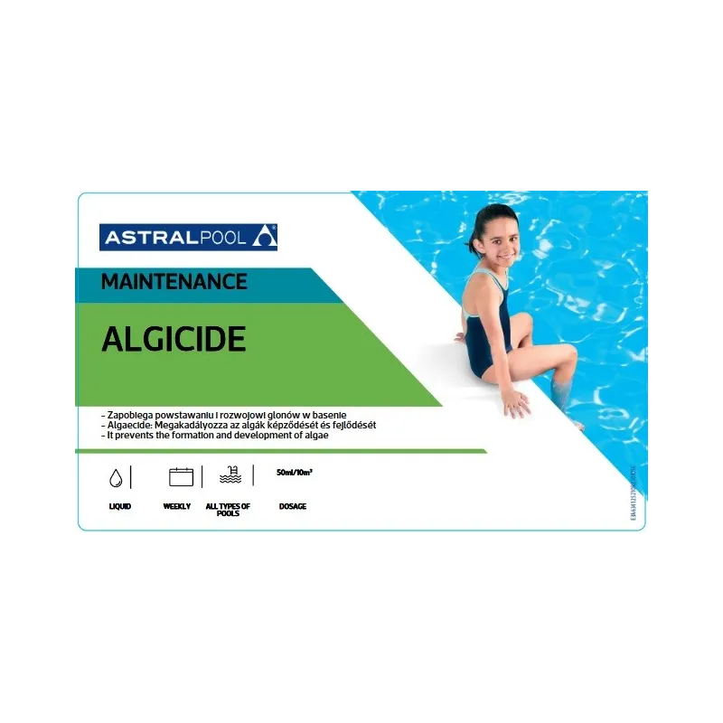 Płyn przeznaczony do niszczenia oraz zapobiegania pojawianiu się glonów w basenie kąpielowym oraz na powierzchni wokół basenu. Szybko działający, niepieniący się, do zwalczania i przeciwdziałania pojawianiu się glonów w wodzie basenowej. Nie przyczynia się do powstawania piany, co czyni go idealnym do stosowania w basenach z urządzeniami do przeciwprądu lub podobnymi, parkach wodnych itp. Pomaga utrzymać wodę krystalicznie czystą, ułatwiając opadanie martwych glonów i zawieszonych cząstek stałych. Zgodny ze wszystkimi rodzajami filtrów, zarówno piaskowymi, jak i diatomowymi.