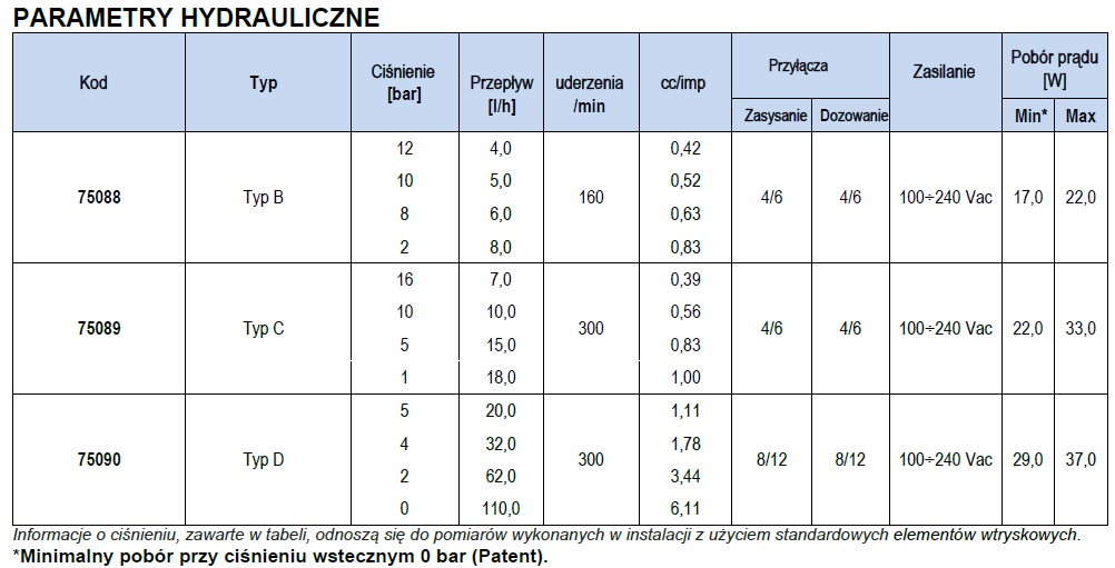 •Przepływ: od 4 do 110 l/h