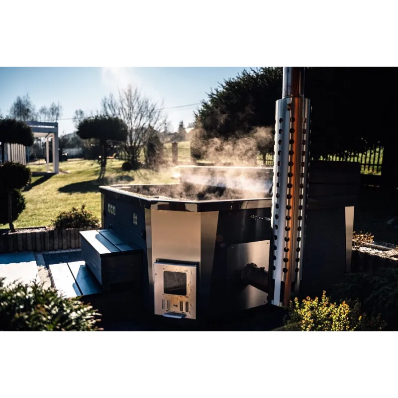 Wanna ogrodowa hybrydowa jest to połączenie pieca na drewno i grzałki elektrycznej. Idealne rozwiązanie, jeśli korzystamy z wanny ogrodowej raz na jakiś czas, ale chcemy utrzymać ciepłą wodę przez kilka dni (np. przez weekend). Szybki czas nagrzewania wody piecem na drewno pozwala uzyskać odpowiednią temperaturę w około 2h. Następnie grzałka pracuje tylko na podtrzymaniu zadanej temperatury. Dzięki temu rozwiązaniu możesz cieszyć się ciepłą, czystą wodą przez cały weekend, bez konieczności ciągłego dogrzewania. To idealne połączenie tradycyjnego i nowoczesnego sposobu ogrzewania, które zapewnia komfort i wygodę użytkowania.