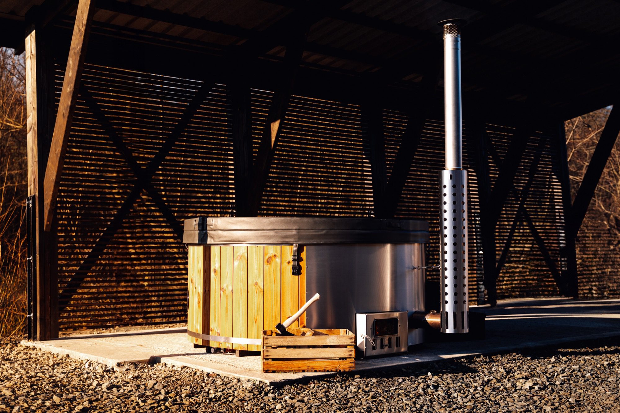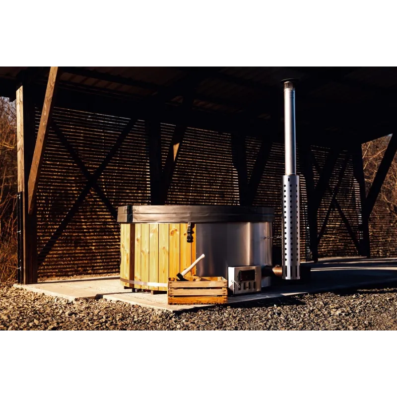 Piec wykonany jest z wysokiej jakości materiałów, co gwarantuje jego trwałość i niezawodność przez długi czas. Drewniane schodki ułatwiają wchodzenie i wychodzenie z balii, zapewniając dodatkowy komfort i bezpieczeństwo.