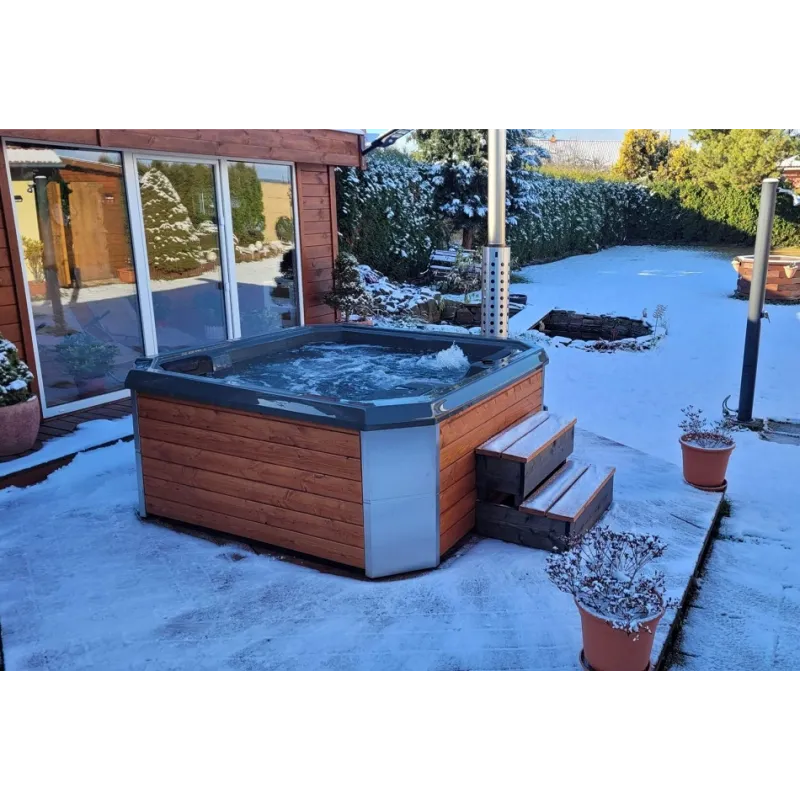 Wanna ogrodowa hybrydowa SAN H to nowoczesne połączenie pieca na drewno i grzałki elektrycznej, które zapewnia komfort kąpieli o każdej porze roku. Dzięki systemowi hydromasażu, 20 dyszom wodno-powietrznym oraz zaawansowanej filtracji, wanna gwarantuje wyjątkowy relaks i pełne odprężenie. Jest to idealne rozwiązanie dla osób ceniących wygodę i elegancję w ogrodzie. Wysokiej jakości materiały, takie jak drewno modrzewiowe oraz akrylowy wkład, sprawiają, że SAN H łączy estetykę z funkcjonalnością, tworząc przestrzeń sprzyjającą odpoczynkowi.