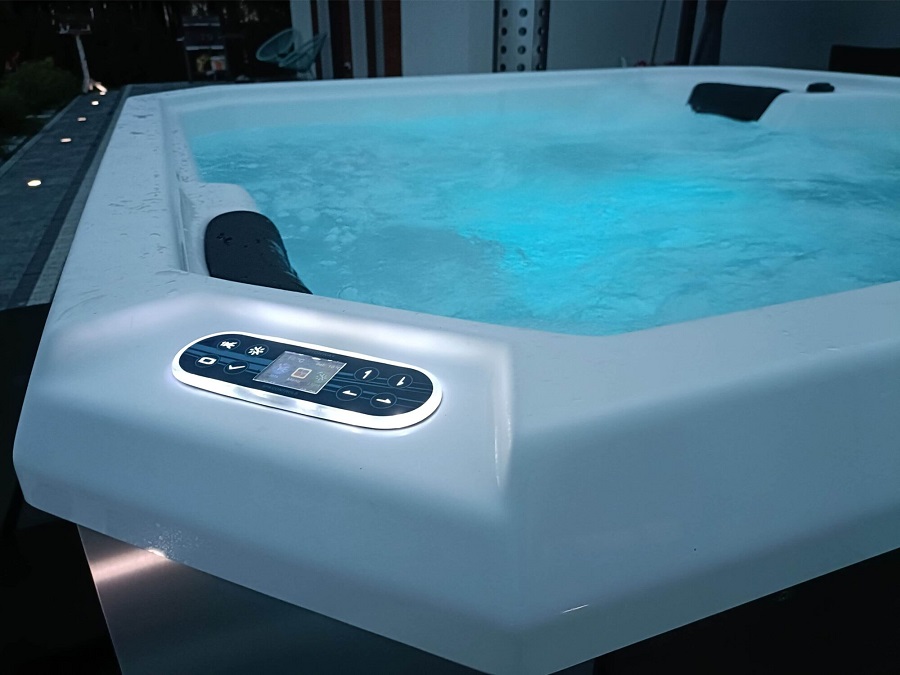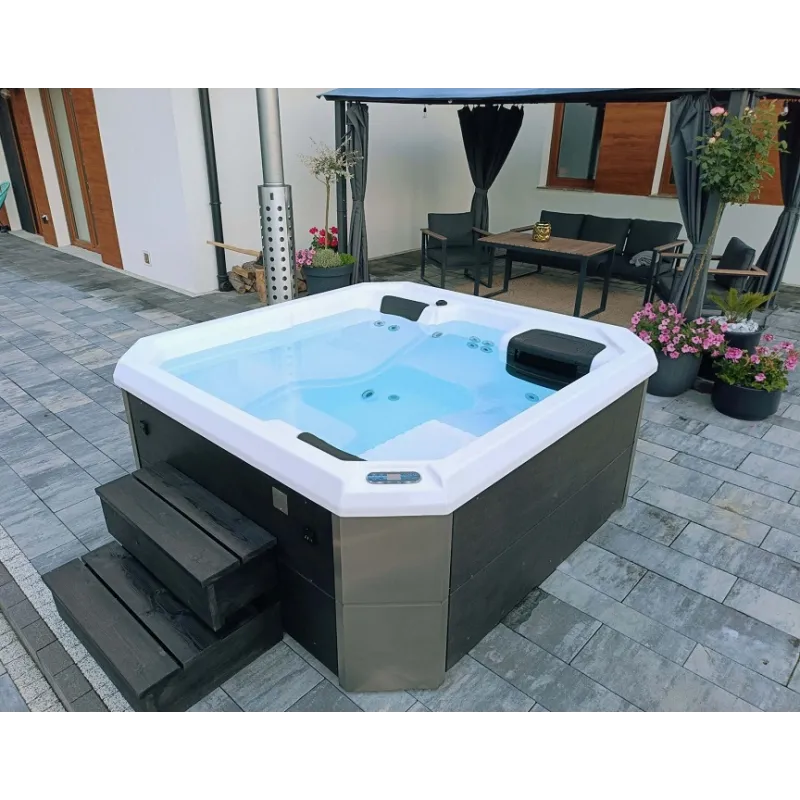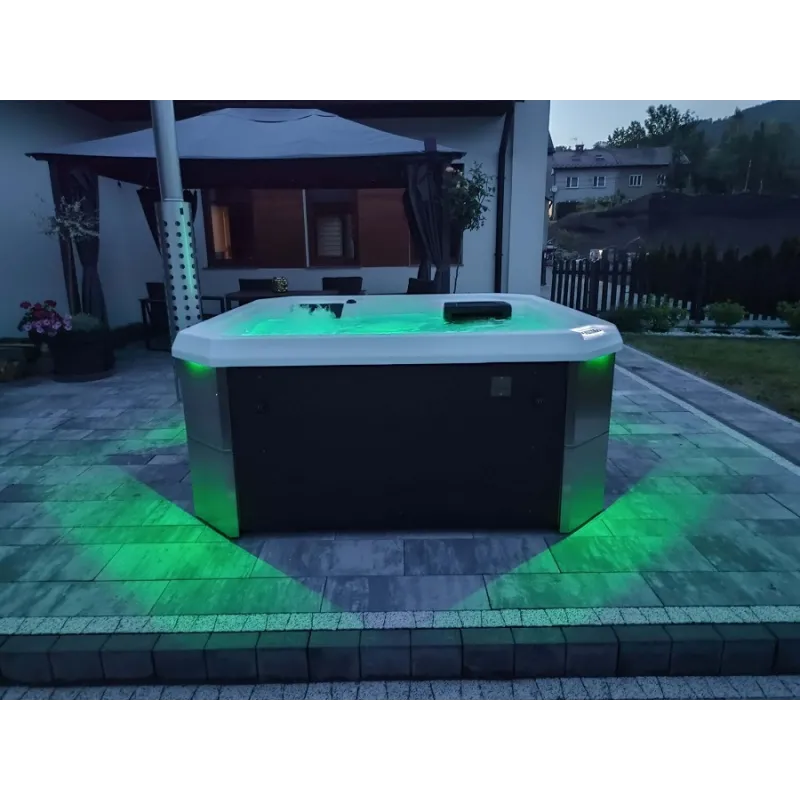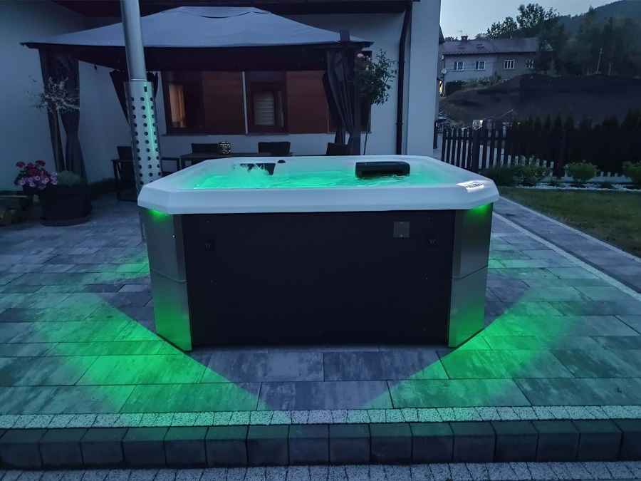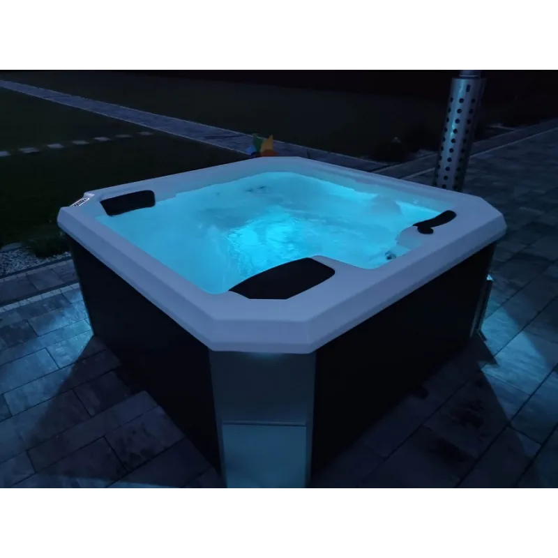 Wanna ogrodowa SAN H jest wyposażona w system filtracji utrzymujący czystość wody, co jest kluczowe dla komfortu i zdrowia użytkowników.