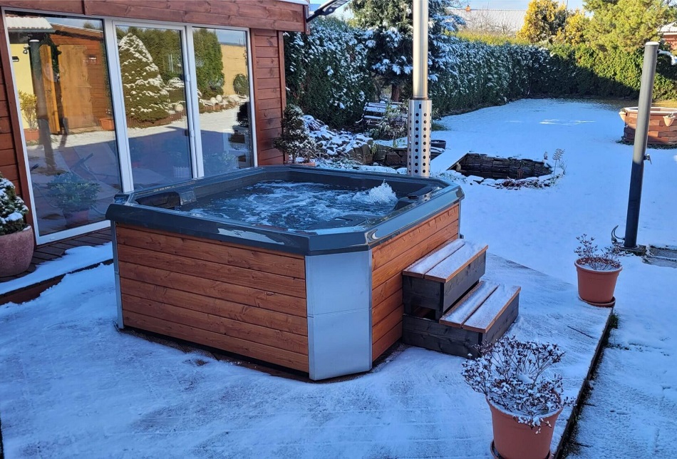 Wanna ogrodowa hybrydowa jest to połączenie pieca na drewno i grzałki elektrycznej. Idealne rozwiązanie, jeśli korzystamy z wanny ogrodowej raz na jakiś czas, ale chcemy utrzymać ciepłą wodę przez kilka dni (np. przez weekend). Szybki czas nagrzewania wody piecem na drewno pozwala uzyskać odpowiednią temperaturę w około 2h. Następnie grzałka pracuje tylko na podtrzymaniu zadanej temperatury. Dzięki temu rozwiązaniu możesz cieszyć się ciepłą, czystą wodą przez cały weekend, bez konieczności ciągłego dogrzewania. To idealne połączenie tradycyjnego i nowoczesnego sposobu ogrzewania, które zapewnia komfort i wygodę użytkowania.