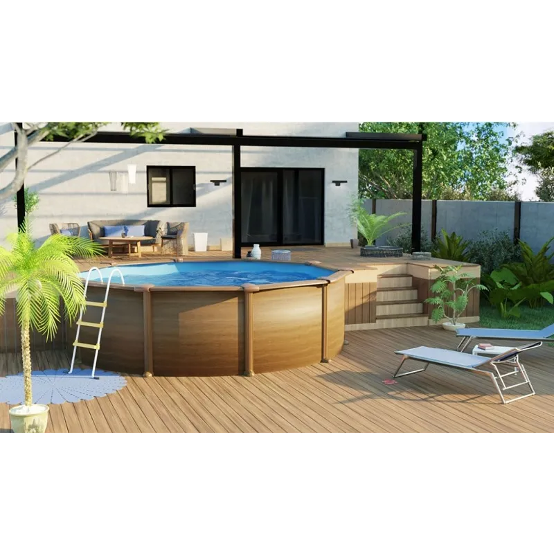 Wolnostojący wyprodukowany z największą starannością przy wykorzystaniu jakościowych materiałów. Do jego konstrukcji użyto solidnej stali, która zapewnia stelażowi należytą stabilność. Ściany basenu wykonano z walcowanej na zimno, fosforyzowanej i galwanizowanej blachy, natomiast wnętrze wyłożono odporną na promieniowanie UV folią basenową PCV  (w postaci gotowego linera do zamontowania wewnątrz basenu).