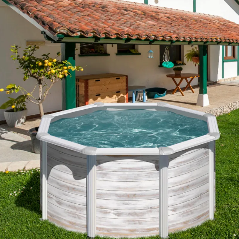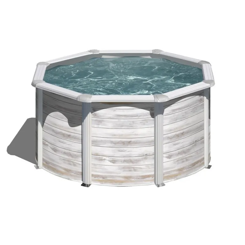 Wolnostojący wyprodukowany z największą starannością przy wykorzystaniu jakościowych materiałów. Do jego konstrukcji użyto solidnej stali, która zapewnia stelażowi należytą stabilność. Ściany basenu wykonano z walcowanej na zimno, fosforyzowanej i galwanizowanej blachy, natomiast wnętrze wyłożono odporną na promieniowanie UV folią basenową PCV o grubości 0,4 mm (w postaci gotowego linera do zamontowania wewnątrz basenu).