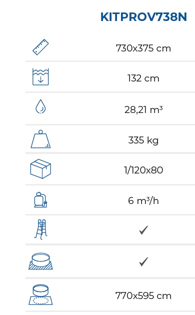 Wolnostojący wyprodukowany z największą starannością przy wykorzystaniu jakościowych materiałów. Do jego konstrukcji użyto solidnej stali, która zapewnia stelażowi należytą stabilność. Ściany basenu wykonano z walcowanej na zimno, fosforyzowanej i galwanizowanej blachy, natomiast wnętrze wyłożono odporną na promieniowanie UV folią basenową PCV o grubości 0,4 mm (w postaci gotowego linera do zamontowania wewnątrz basenu).