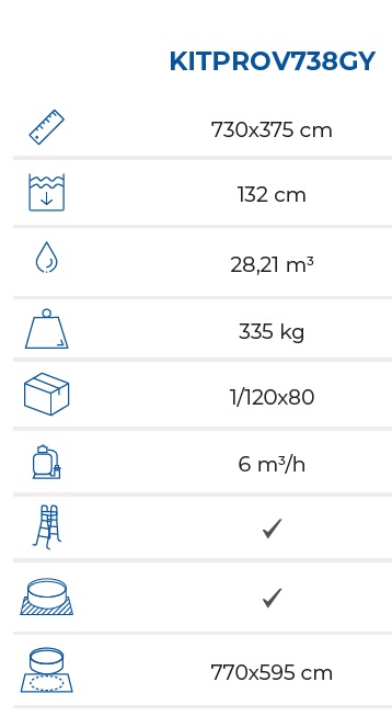 Wolnostojący wyprodukowany z największą starannością przy wykorzystaniu jakościowych materiałów. Do jego konstrukcji użyto solidnej stali, która zapewnia stelażowi należytą stabilność. Ściany basenu wykonano z walcowanej na zimno, fosforyzowanej i galwanizowanej blachy, natomiast wnętrze wyłożono odporną na promieniowanie UV folią basenową PCV o grubości 0,4 mm (w postaci gotowego linera do zamontowania wewnątrz basenu).