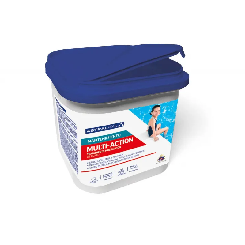 Tabletki wielofunkcyjne do basenu AstralPool MULTIACTION to środek chemiczny o szerokim działaniu: