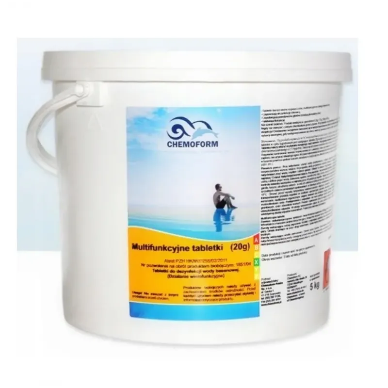 Stały preparat chlorowy w formie tabletek (20g). Zawiera ok. 90% aktywnego chloru, koagulant, stabilizator pH, środek glonobójczy.