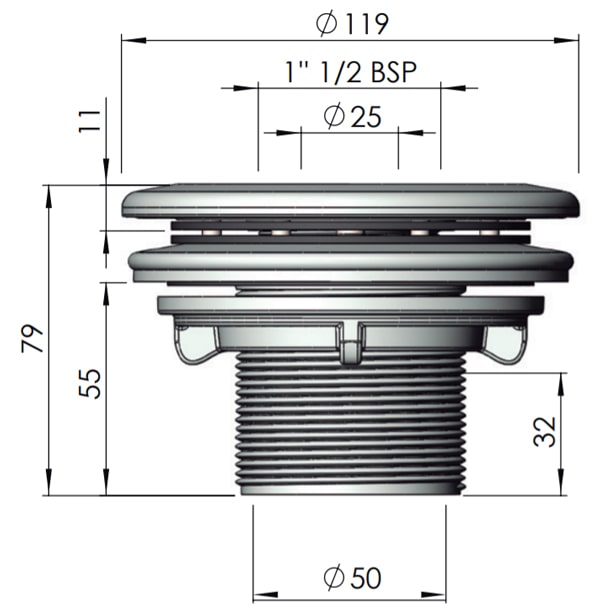 Ø 50 mm średnica wewnętrzna do wklejenia rury.