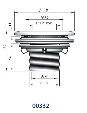 Posiada gwint zewnętrzny 2'' lub do wyklejenia rury 50mm wykonana z ABS,