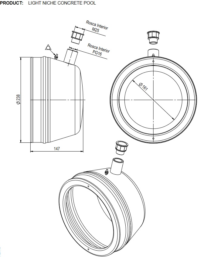 Nisza do lamp stal nierdzewna basen betonowy 230 mm (54102) Astralpool