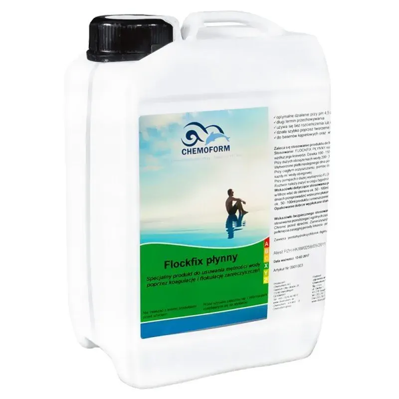 Specjalny środek do usuwania mętności wody przez flokulację i koagulację zanieczyszczeń. Płynny środek koagulacyjny z szerokim spektrum wartości pH. Nadaje się zarówno do ręcznego jak i automatycznego dozowania, można rozcieńczać wodą.
