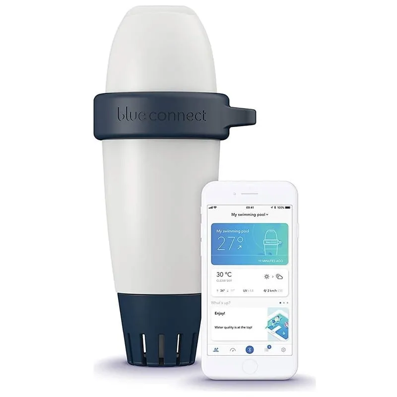 Blue Connect Go Bluetooth to inteligentny tester wody w basenie, który mierzy jakość wody i informuje o chemii basenowej potrzebnej do utrzymania basenu, wszystko ze smartfona !