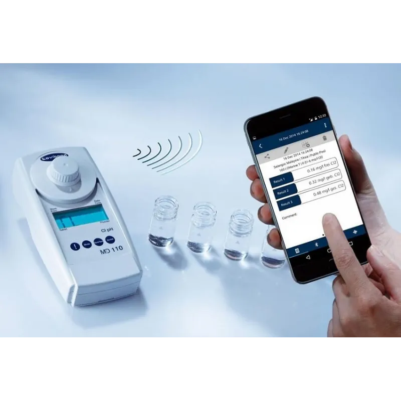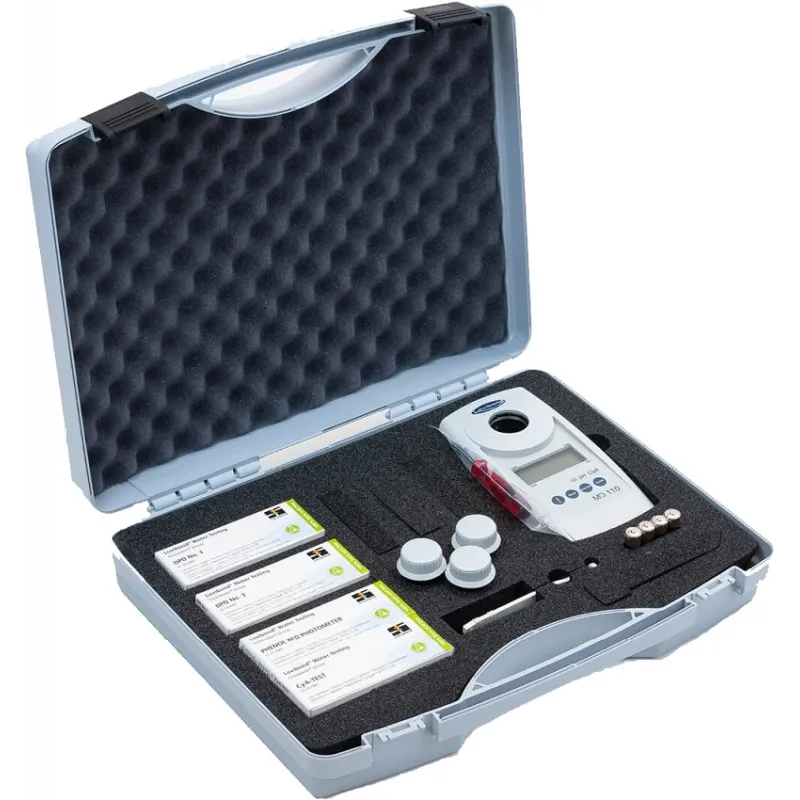 Fotometr Lovibond MD 110 (3 in 1) – przeznaczony jest zwłaszcza do monitorowania basenów, zapewnia pomiar 3 parametrów: chloru wolnego/całkowitego, odczynu pH i kwasu cyjanurowego (CL-PH-CYA)