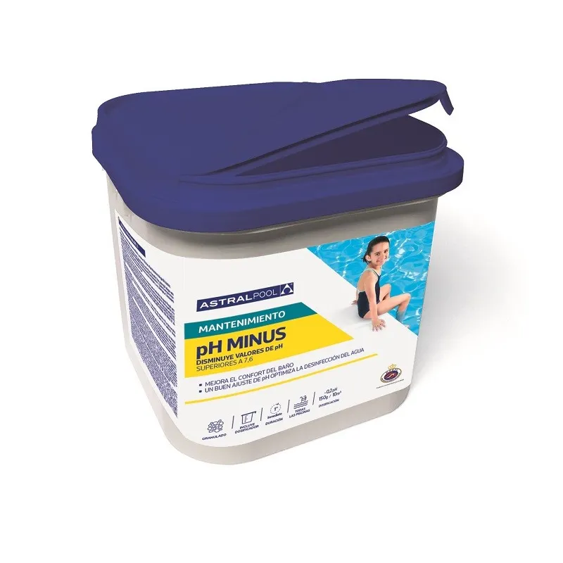 Dodać 1,5 kg produktu na 100 m3 objętości wody, aby zmniejszyć pH o 0,2 jednostki (150 g/ m3). Dawka ta ma charakter orientacyjny. Idealna równowaga