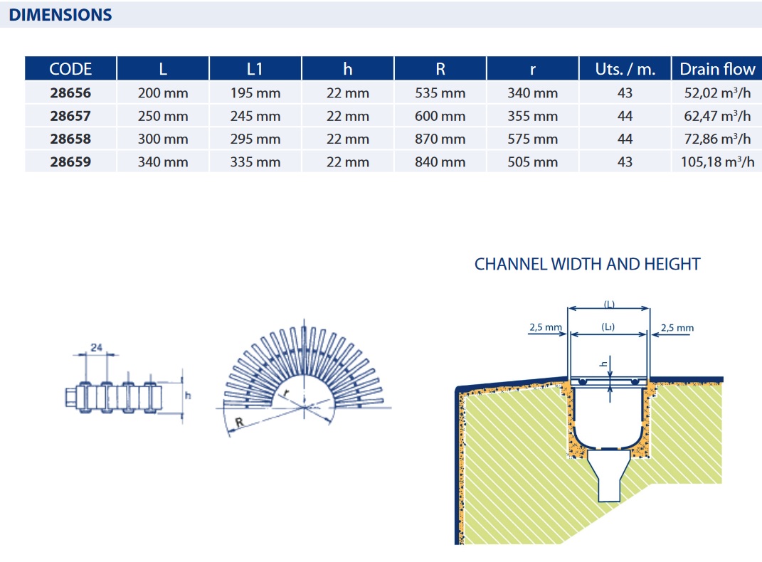 Wykonane z PP (polipropylenu) stabilizowanego przed promieniami UV. Standardowy kolor biały. Niezbędne jest wykonanie kanału o 5mm szerszego niż sama krata, aby umożliwić łatwy demontaż i wymianę. Zatrzaskuje się na środkowym grzbiecie, umożliwiając elastyczność między płytkami (45 jednostek na metr)