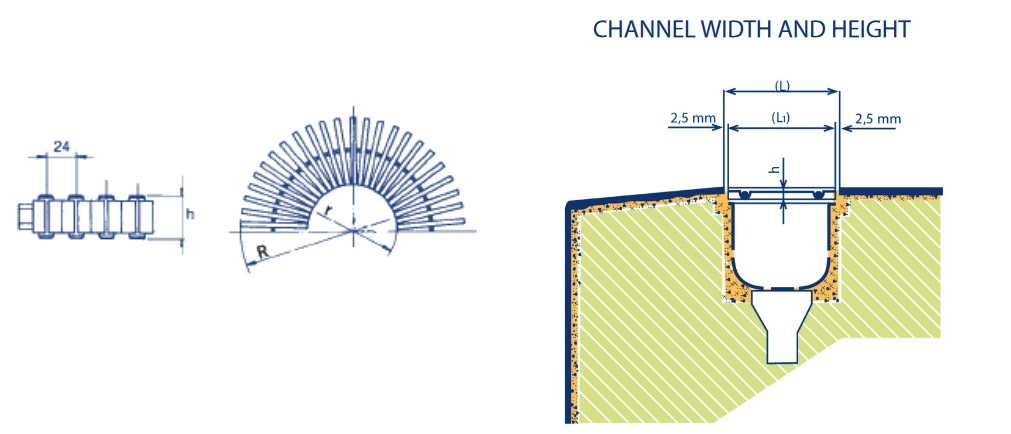 Wykonane z PP (polipropylenu) stabilizowanego przed promieniami UV. Standardowy kolor biały. Niezbędne jest wykonanie kanału o 5mm szerszego niż sama krata, aby umożliwić łatwy demontaż i wymianę. Zatrzaskuje się na środkowym grzbiecie, umożliwiając elastyczność między płytkami (45 jednostek na metr)