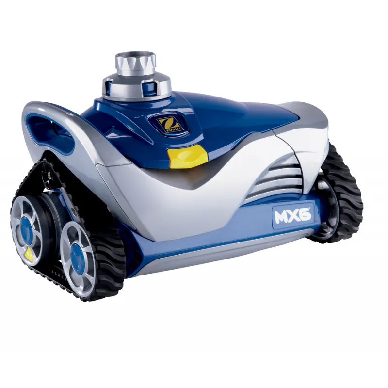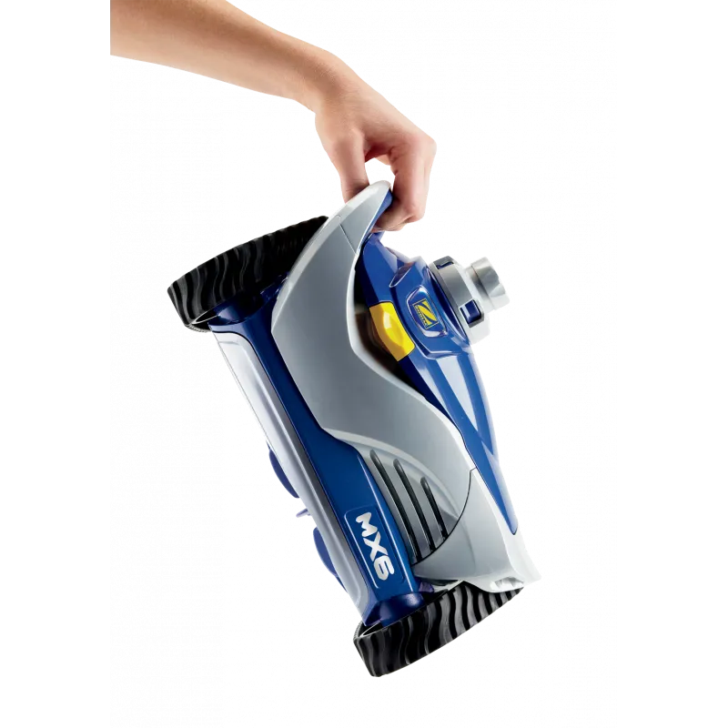 MX 6 posiada innowacyjny, zaprogramowany system sterowania - X-drive - który automatycznie zmienia kierunek jazdy. Zapewnia to metodyczne objęcie czyszczeniem wszystkich obszarów basenu, niezależnie od jego kształtu i rodzaju dna. Dzięki systemowi kół gąsienicowych z nacięciami, maszyna poradzi sobie z każdą napotkaną przeszkodą. MX6 posiada również potężną turbinę ssącą, której wydajność jest zwiększona dzięki dwóm śrubom napędowym przyciągającym zanieczyszczenia w kierunku zasięgu urządzenia.Wyjątkowe innowacje Zodiac® w połączeniu z szerokim otworem ssącym odkurzacza zapewniają, że przy każdym przejeździe zasysana jest większa ilość zanieczyszczeń
