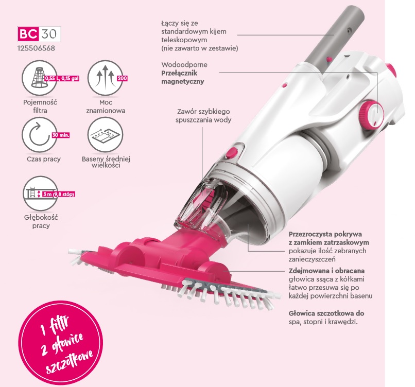Odkurzacz basenowy akumulatorowy do małych i średnich basenów i jacuzzi (do 15m3)