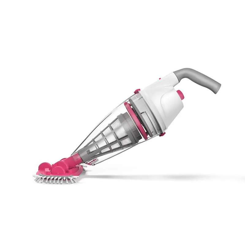 Odkurzacz basenowy ma obrotową głowicę ssącą ze szczotkami bocznymi do czyszczenia narożników i usuwania zaskorupiałych osadów.