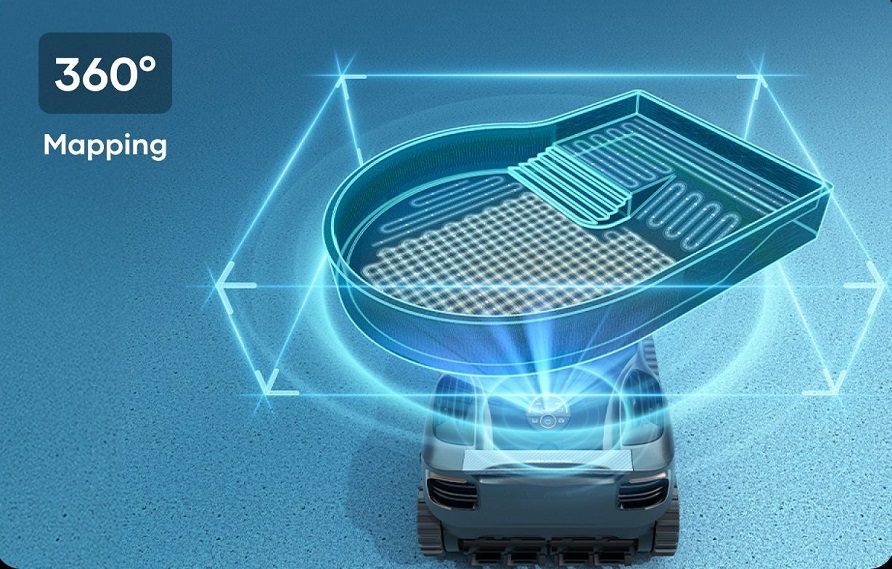 Wyposażony w 40 czujników i czterordzeniowy chip, Scuba X1s Pro Max wykonuje skanowanie 3D basenu, rozpoznając skomplikowane ukształtowanie, takie jak spadki i platformy.