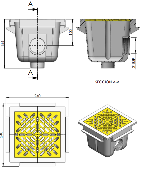 Odpływ rusztowy kwadratowy ABS 210 x 210Wylot boczny 2″. Korpus i grill z białego ABS. Grill mocowany za pomocą śrub. Maks. przepływ: 13 m3/h.Zgodny z normami:EN 16582-1