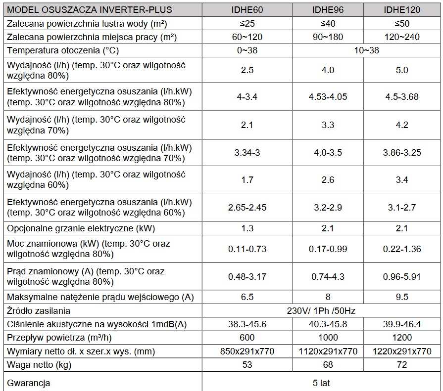 CECHY OSUSZACZA FIRELAND  INVERTER PLUS PODSUMOWANIE