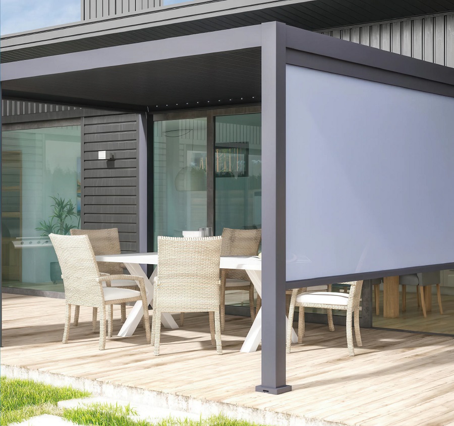 Dzięki pergoli z roletą stworzysz własne miejsce relaksu. Możesz zamontować ją na jednej lub paru ścianach dopasowując pergolę do swoich potrzeb.