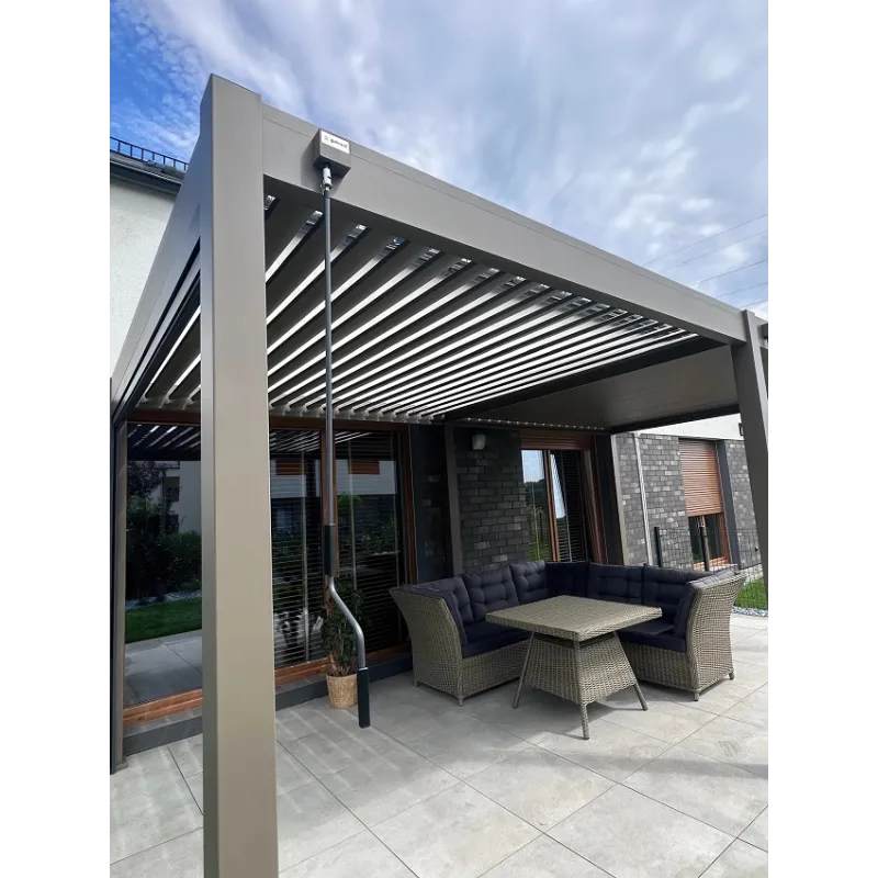 UWAGA! Cena podana dotyczy kompletnej podstawowej wersji pergoli - dach i nogi. Elementy boczne takie jak rolety zacieniające czy panele żaluzji bocznych należy dokupić dodatkowo i nie wchodzą one w zakres dostawy.