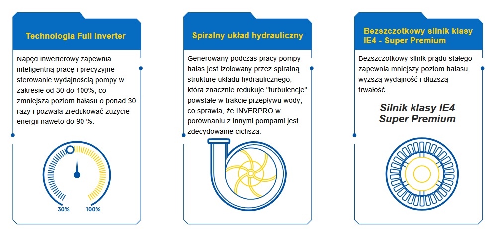 INVERPRO to zaawansowana technologicznie, energooszczędna i niezwykle cicha pompa obiegowa do basenów. Dzięki inteligentnemu sterowaniu, wysokiej efektywności oraz zdalnej obsłudze jest doskonałym wyborem dla wymagających użytkowników. Jeśli szukasz pompy, która zapewni niezawodność, komfort i maksymalną oszczędność energii, INVERPRO jest najlepszym rozwiązaniem.