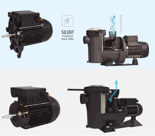 Jedyna zmiana jaka ma wpływ na ustawienie pompy to odsadzenie silnika pompy. W wersji SILENT silnik wychodzi dalej za pompę!