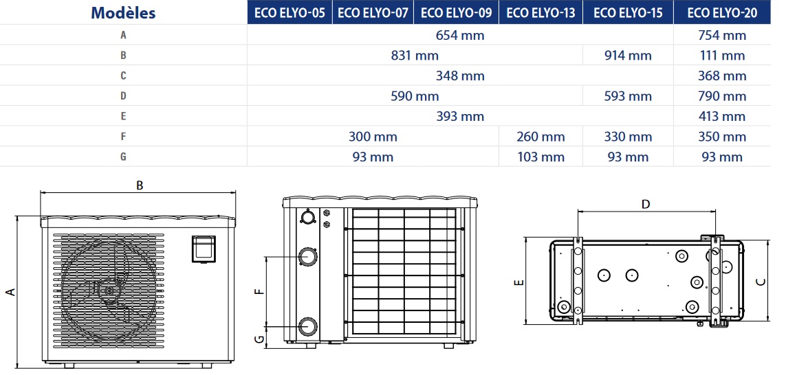 Model występuje w 6 wielkościach, w związku z czym, Eco Elyo o właściwej mocy może pracować z każdym basenem i tym małym i trochę większym