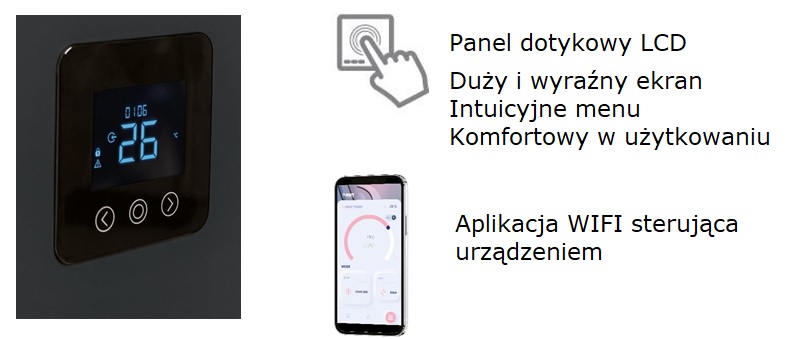 - Posiada moduł WI-FI – steruj z telefonu za pomocą aplikacji