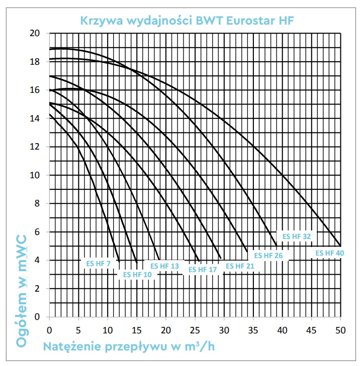 Wysoka wydajność dzięki oszczędności energii. Dzięki swojej konstrukcji pompy Eurostar HF osiągają wydajność hydrauliczną o 20% wyższą niż inne pompy dostępne na rynku w tej samej kategorii. Wydajność hydrauliczna jest zoptymalizowana przy całkowitej wysokości podnoszenia pomiędzy 5 a 10 mWC, oznacza to, że pompy Eurostar HF są szczególnie odpowiednie do uzyskania oszczędności energii zarówno w konwencjonalnych/istniejących obiegach, jak i w obiegach zoptymalizowanych hydraulicznie.