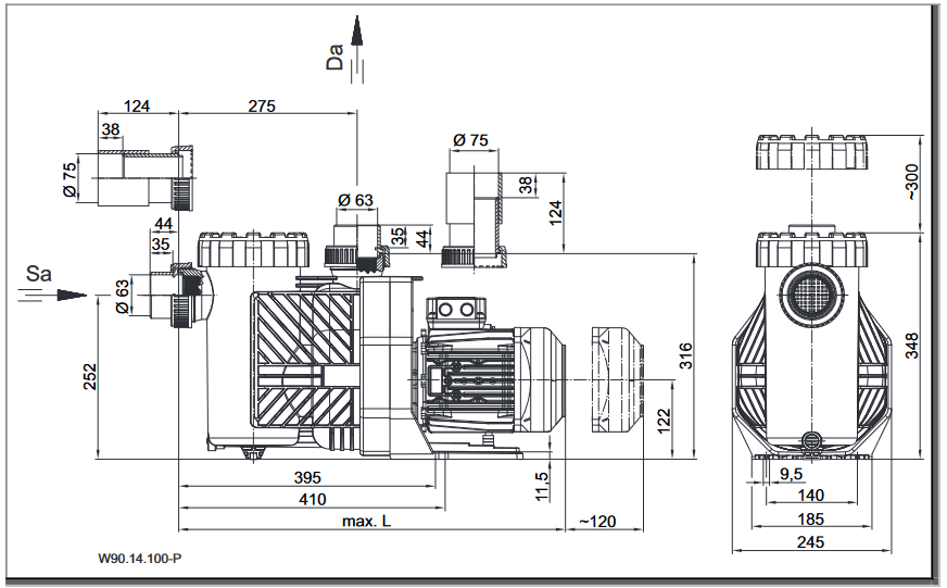 Dzięki gwintowanym wlotom i wylotom tej pompy do filtracji basenowej ułatwi to wybór rodzaju połączenia w celu podłączenia pompy do sieci hydraulicznej