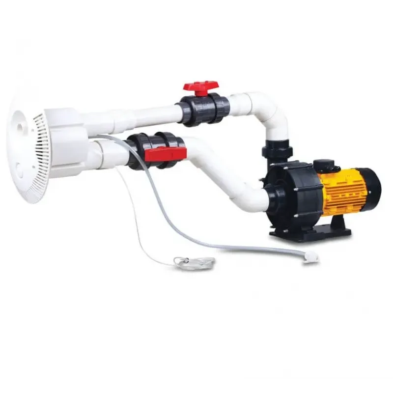 Regulowany przeciwprąd do treningu pływania. System przeciwprądowy jest gotowy do prostej instalacji. Możliwa jest regulacja siły strumienia wody oraz ilości powietrza zasysanego na dyszy o wielkości 40 mm, której kierunek można regulować. Dysza, ssanie i przełącznik pneumatyczny umiejscowione są na przednim panelu urządzenia. W komplecie zawory montażowe.