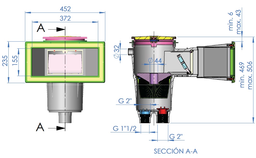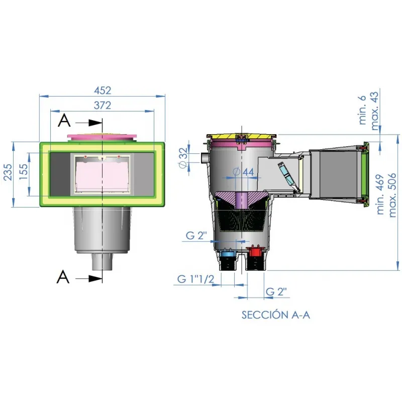 Skimmer służy do zasysania wody z powierzchni basenu przez urządzenie filtracyjne.