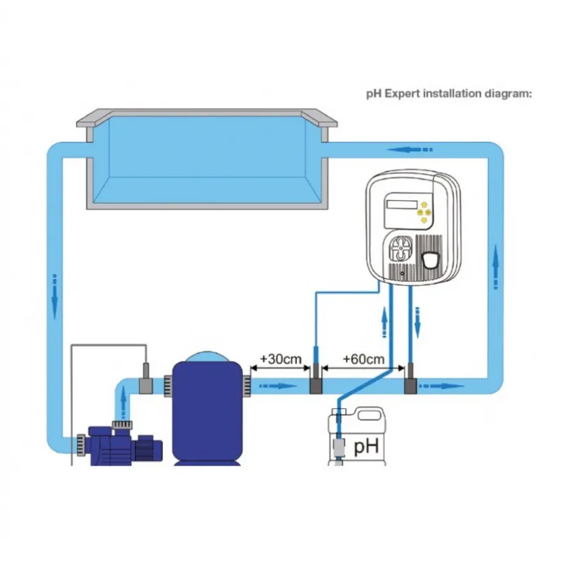PH EXPERT stale mierzy jakość wody i, jeśli jest to konieczne, dokonuje w pełni zautomatyzowanych ustawień w ciekłym dozowaniu PH, bez jakichkolwiek wymaganych ustawień. Dzięki unikalnemu systemowi bezpieczeństwa PH Expert dba o odpowiednią jakość wody, zapewniając optymalny bilans PH przy użyciu minimalnej dawki produktu