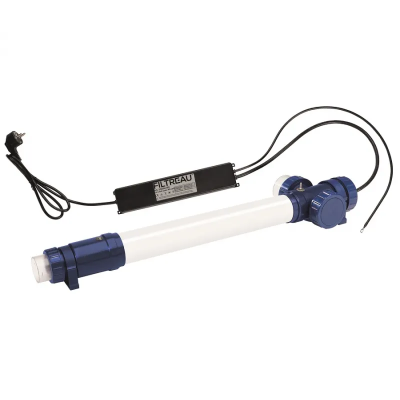 Lampa do dezynfekcji wody promieniami UV. Lampę powinno się zamontować w instalacji za filtrem. Lampa UC pozwala na zmniejszenie ilości chloru o 80%. Zminimalizuj użycie chemikaliów