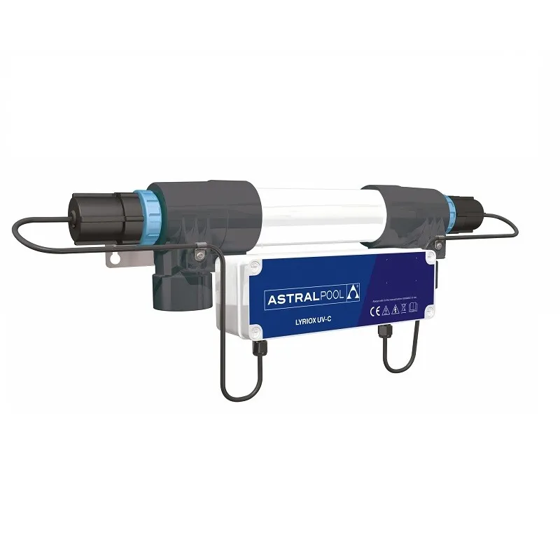 Lampa do dezynfekcji wody promieniami UV. Lampę powinno się zamontować w instalacji za filtrem. Lampa UC pozwala na zmniejszenie ilości chloru o 80%. Lampa UV-C niszczy bakterie i drobnoustroje. Lampa bakteriobójcza UV jest zdecydowanie bezpieczniejszym sposobem na dezynfekcję basenu niż używanie tylko chloru, który nie jest obojętny dla skóry i organizmu człowieka. Po pierwsze ten pierwiastek na dłuższą metę ma szkodliwy wpływ na włosy i skórę, ponieważ usuwa warstwę lipidową, która jest naturalną ochroną ludzkiego naskórka. Stąd uczucie suchości, które pojawia się po dłuższym pobycie w basenie. Nie należy zapominać także o tym, że chlor podrażnia spojówki i pobyt na pływalni może kojarzyć się nie z przyjemnością, ale poczuciem dyskomfortu. Woda musi posiadać mętność nie większą, niż 15 mg/dm3.