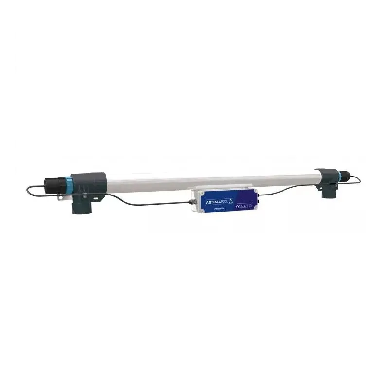 Lampa do dezynfekcji wody promieniami UV. Lampę powinno się zamontować w instalacji za filtrem. Lampa UC pozwala na zmniejszenie ilości chloru o 80%. Lampa UV-C niszczy bakterie i drobnoustroje. Lampa bakteriobójcza UV jest zdecydowanie bezpieczniejszym sposobem na dezynfekcję basenu niż używanie tylko chloru, który nie jest obojętny dla skóry i organizmu człowieka. Po pierwsze ten pierwiastek na dłuższą metę ma szkodliwy wpływ na włosy i skórę, ponieważ usuwa warstwę lipidową, która jest naturalną ochroną ludzkiego naskórka. Stąd uczucie suchości, które pojawia się po dłuższym pobycie w basenie. Nie należy zapominać także o tym, że chlor podrażnia spojówki i pobyt na pływalni może kojarzyć się nie z przyjemnością, ale poczuciem dyskomfortu. Woda musi posiadać mętność nie większą, niż 15 mg/dm3.