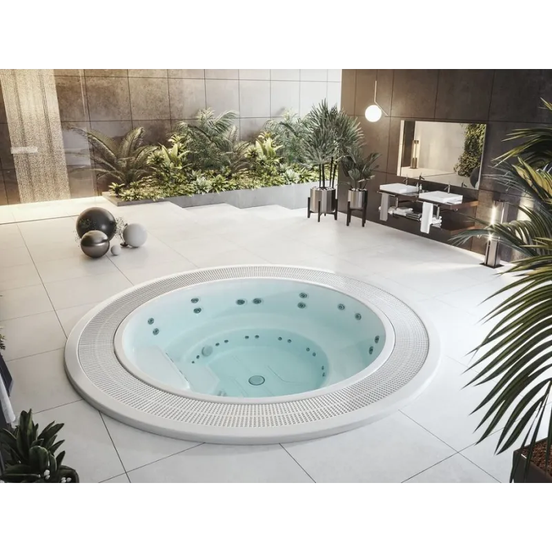 Duża wanna SPA z rynną przelewową ROMA gwarantuje wyjątkowe doznania nawet dla dziewięciu osób jednocześnie. W przypadku każdego stanowiska zaprojektowano indywidualnie dostosowany hydromasaż. Wanna zapewnia maksymalny komfort i wygodę użytkowania. Ponadczasowy okrągły kształt doskonale komponuje się z każdą aranżacją.