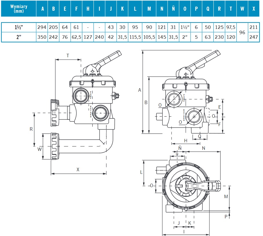 Zawór 6-drogowy to najpopularniejszy rodzaj zaworu wielodrogowego pozwalający na dokonanie niezbędnych czynności poprzez ustawienie rączki w 6 różnych pozycjach: filtracja, zrzut do kanalizacji, zamknięcie, płukanie wsteczne, recyrkulacja i płukanie zwrotu. występuje w różnych średnicach i konfiguracjach przyłączy. Jest prosty w obsłudze, zapewnia szczelność i wygodę użytkowania. Korpus, pokrywa i rączka wykonane z ABS. Zawiera elementy ze stali nierdzewnej.