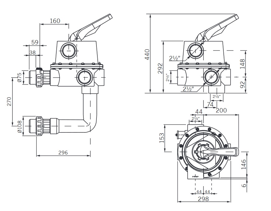 Zawór 6-drogowy to najpopularniejszy rodzaj zaworu wielodrogowego pozwalający na dokonanie niezbędnych czynności poprzez ustawienie rączki w 6 różnych pozycjach: filtracja, zrzut do kanalizacji, zamknięcie, płukanie wsteczne, recyrkulacja i płukanie zwrotu. występuje w różnych średnicach i konfiguracjach przyłączy. Jest prosty w obsłudze, zapewnia szczelność i wygodę użytkowania. Korpus, pokrywa i rączka wykonane z ABS. Zawiera elementy ze stali nierdzewnej.
