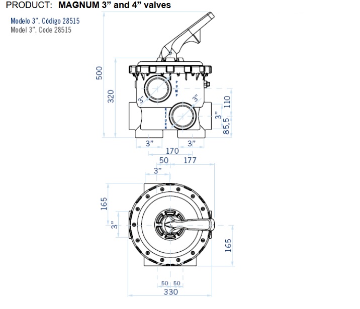 Zawór 6-drogowy bez przyłączy marki Astral Pool 3'' Magnum - 28515